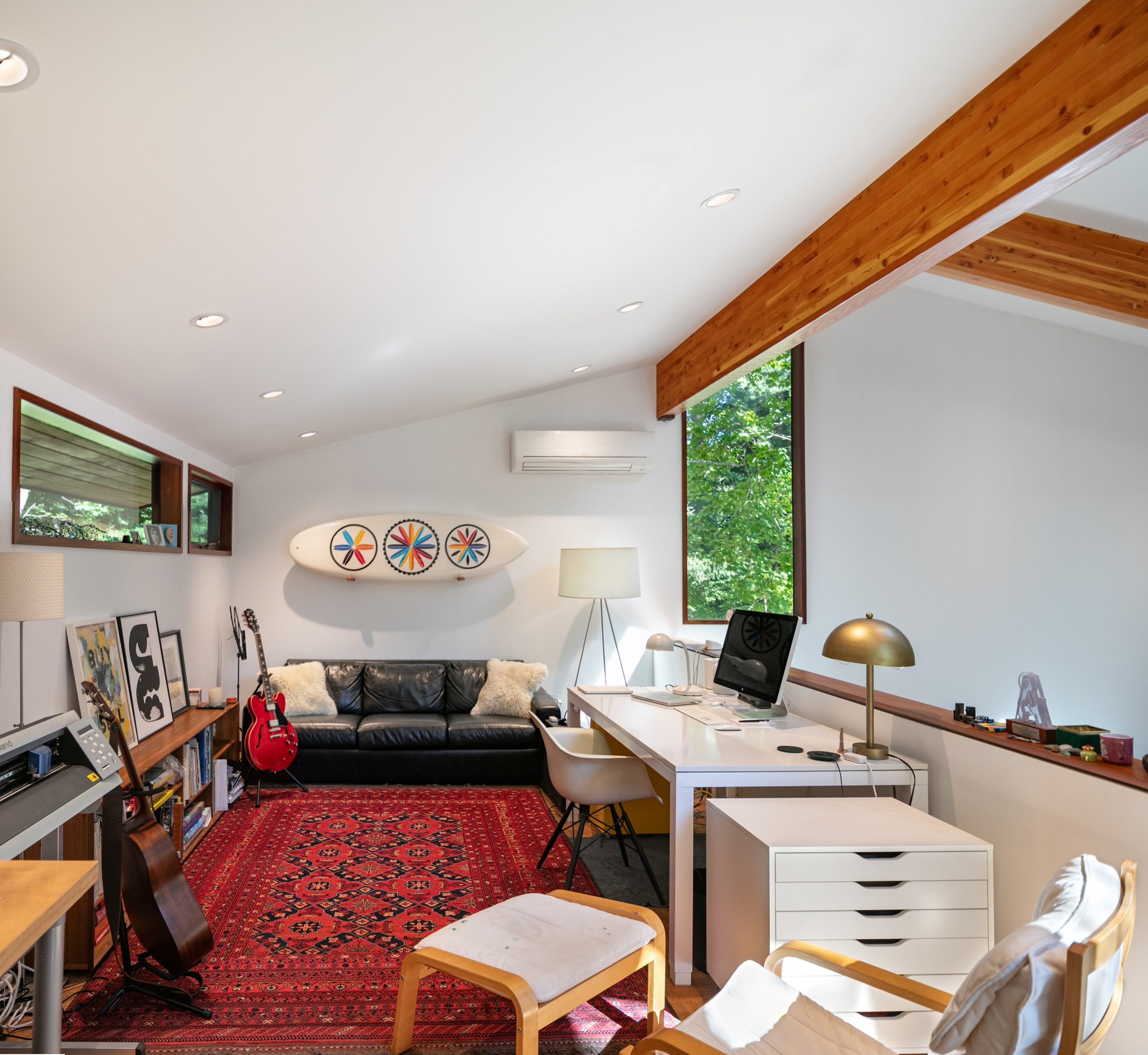 Artist’s studios such as this remind us that creativity isn’t magical – it’s human. It’s messy, deliberate, playful, and deeply personal. Some studios are meticulously organized, while others are disheveled. Some spaces contain musical instruments, while others contain paint canvases. The creative space pulses with energy, revealing clues about how these artists work through their musical and fine art improvisations. It’s clearly a sanctuary where creativity flourishes & creative ideas thrive.