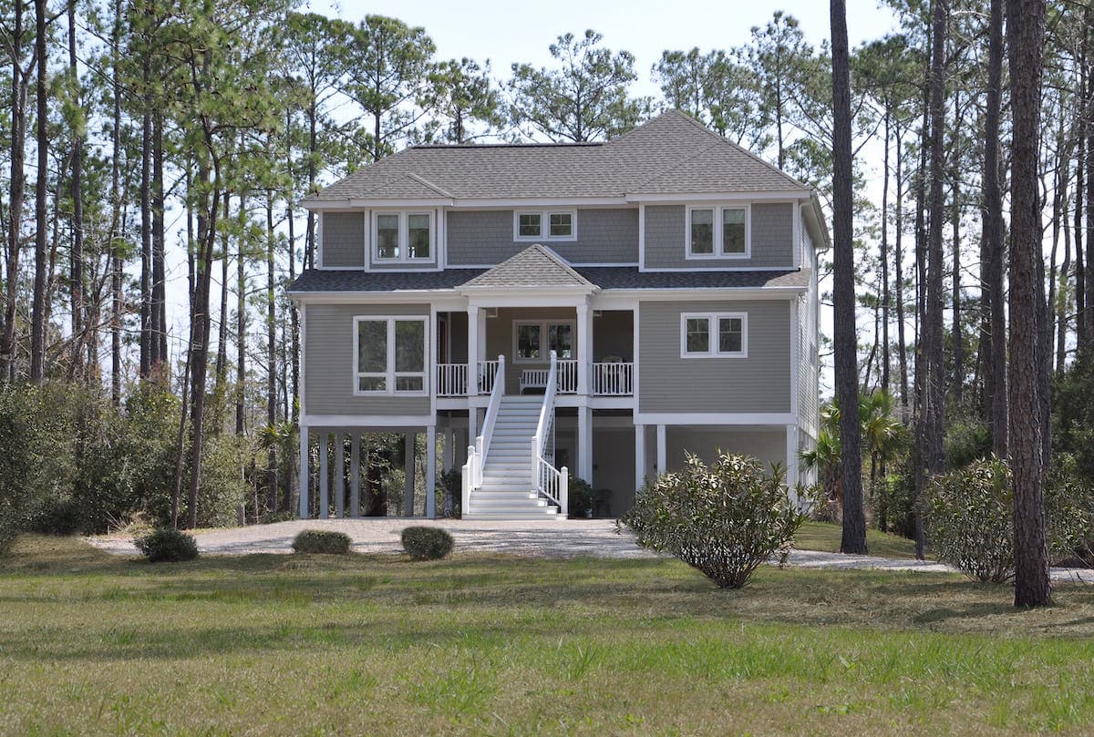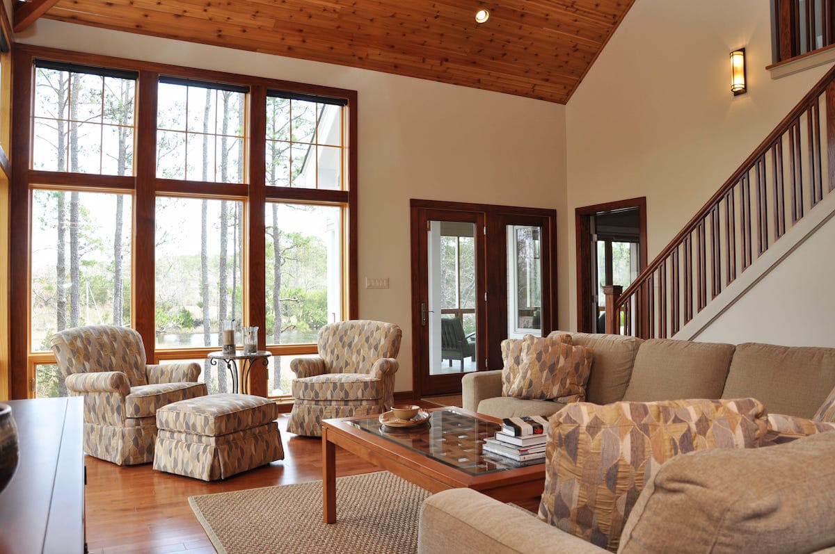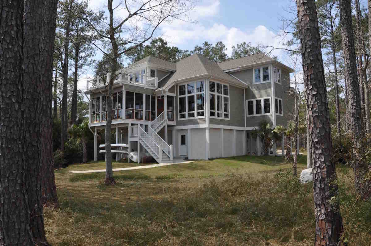 This Coastal home is a beautiful example of Acorn Deck House Company’s custom design flexibility to meet the needs of every site. This home is elevated on posts to meet the local zoning requirements and features “breakaway” panels in case of rising tides, hurricane winds and storm surges. The Coastal has three bedrooms, four bathrooms and is designed with a future elevator in mind.