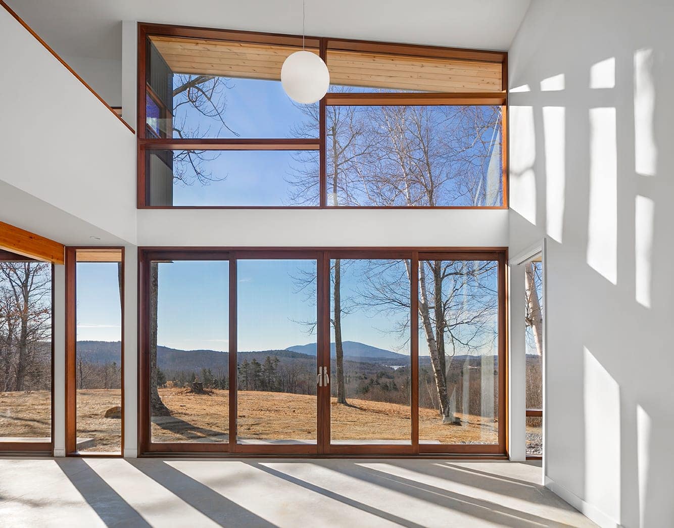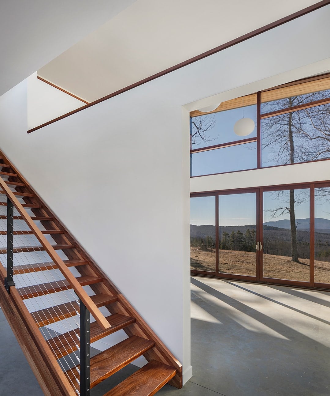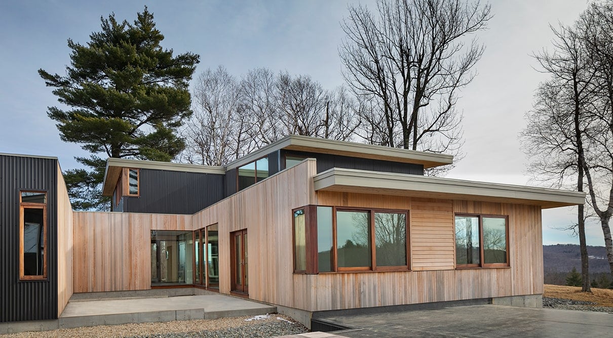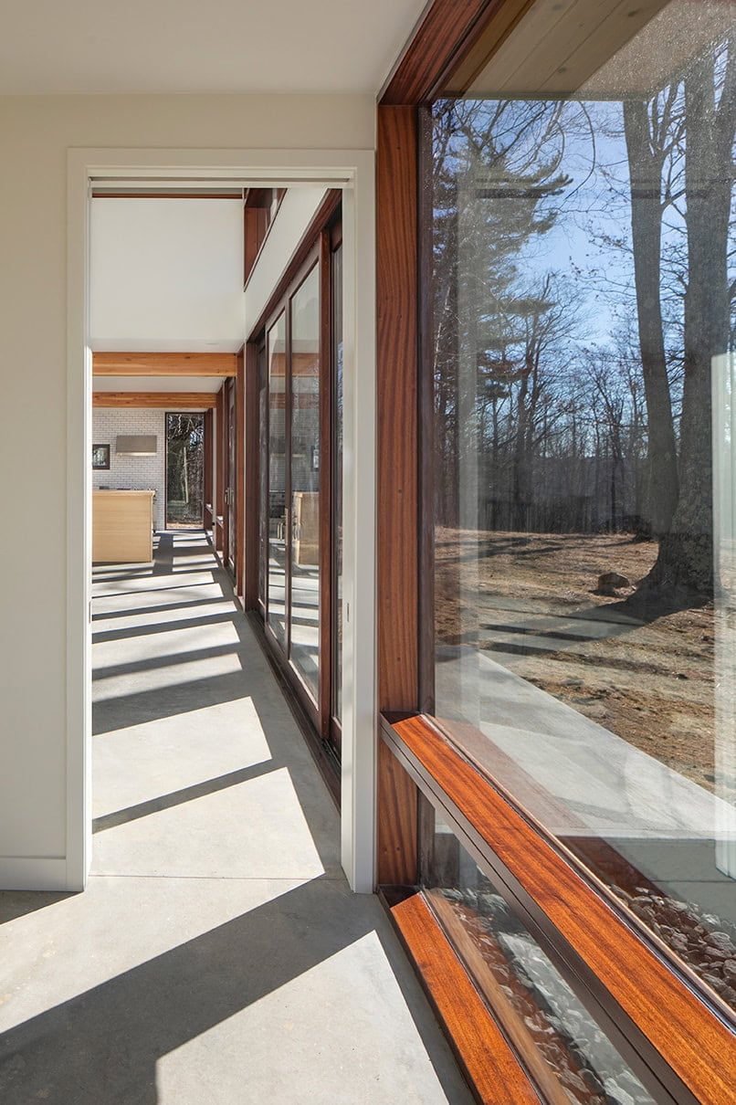 Monadnock Retreat is striking nestled amongst the mountains of New Hampshire. It features an expansive open floor plan and floor-to-ceiling walls of glass to capture the views. This home has three bedrooms and two-and-a-half baths, including a master bath with an open-air shower and balcony.